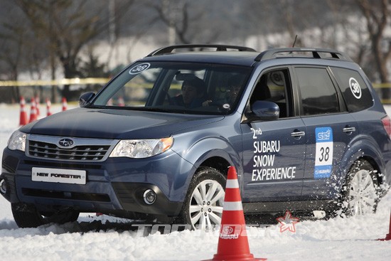 19일 오전 경기도 이천 지산 포레스트 리조트에서 진행된 '2011 스바루 스노우 익스피리언스(2011 SUBARU Snow Experience)'에서 컴팩트 SUV '뉴 포레스터'가 눈 길 위를 주행했다.