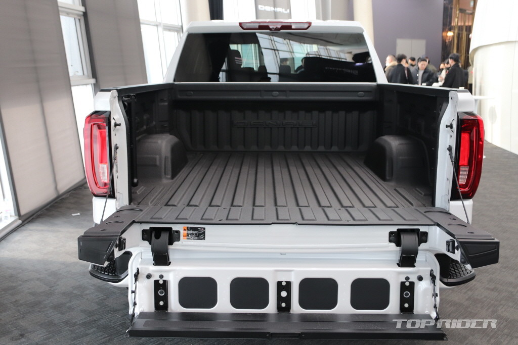 시에라의 실내는 풀사이즈 SUV 수준으로 넓다. 특히 2열 레그룸은 1102mm로 1열 레그룸에 준하는 정도의 안락한 공간을 제공한다. 시에라 실내외 곳곳에는 오랫동안 픽업트럭을 개발해온 GMC의 노하우가 반영됐다. 2열 시트백 및 하단에는 히든 스토리지가 적용됐다.