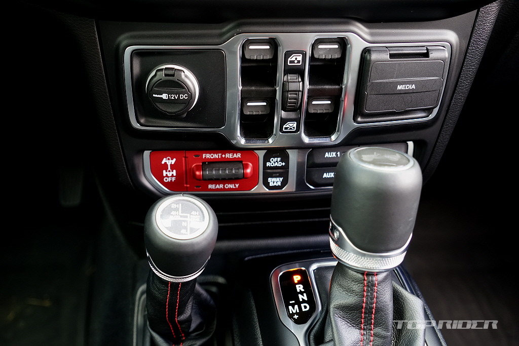 4-HI 모드에서 오프로드 플러스 버튼을 가동하면, 더 빠른 속도로 모래 주행이 가능하도록 조절된다. 4-LO 모드에서 버튼을 누르면, 저속 록 크롤링에 맞게 운영이 변경된다. 그 밖에 블랙 색상의 3피스 하드탑, 블랙 주유구 커버 등으로 외관 디자인에 포인트를 부여했다.