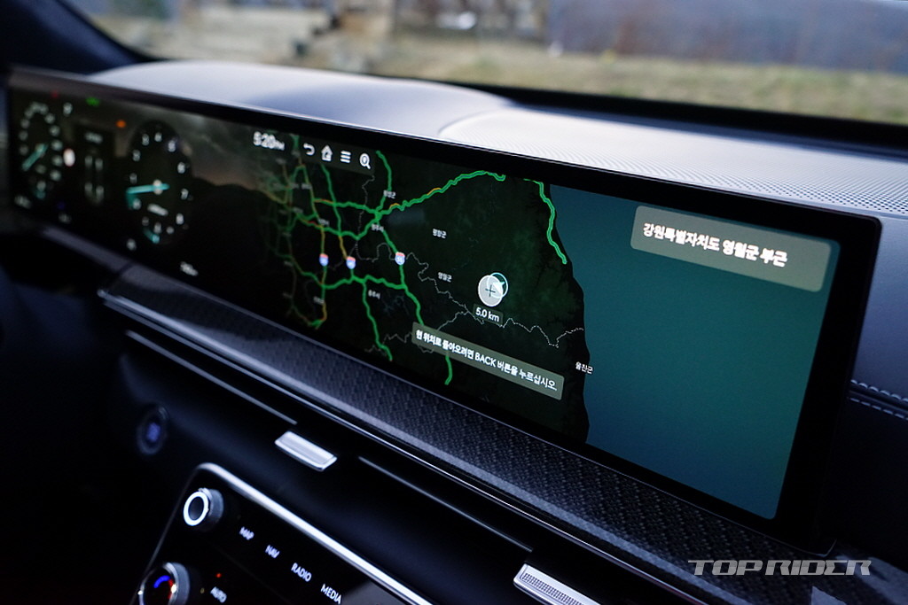 GV80 48V 일렉트릭 슈퍼차저에는 415마력으로 강화된 엔진과 초반 반응성, 스포츠 플러스 모드와 런치 컨트롤이 추가돼 보다 다이내믹한 주행이 기대된다. 고속주행시 안정감은 최고속도 부근에서도 꾸준히 유지된다. 고속에서 불필요한 움직임이 상당부분 정제된 감각이다.
