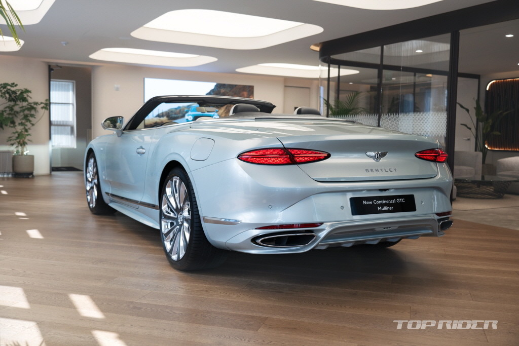 전시된 차량은 더 뉴 컨티넨탈 GTC 뮬리너로, 산뜻한 브리즈(Breeze) 외장 컬러와 밝은 인테리어로 우아하고 럭셔리한 감성을 극대화했다. 뮬리너 라인업의 새로운 시그니처 ‘플로팅 다이아몬드(Floating Diamond)’ 라디에이터 그릴과 크롬 피니시, 토너 커버(tonneau cover)에 적용된 새로운 스티칭 패턴 등 유니크한 디테일들 또한 확인할 수 있다.