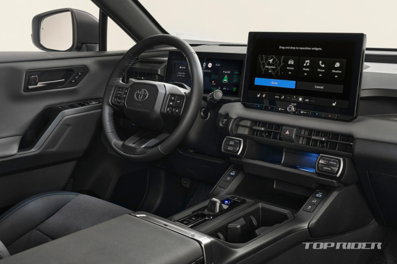 신형 라브4 차체 크기는 전장 4618mm, 휠베이스 2690mm로 이전 세대와 유사하다. 실내에는 12.3인치 디지털 계기판, 12.9인치 터치 디스플레이, 헤드업 디스플레이 등이 배치됐다. 시프트 바이 와이어가 적용된 일부 트림은 소형 토글 스위치 변속기를 제공한다.
